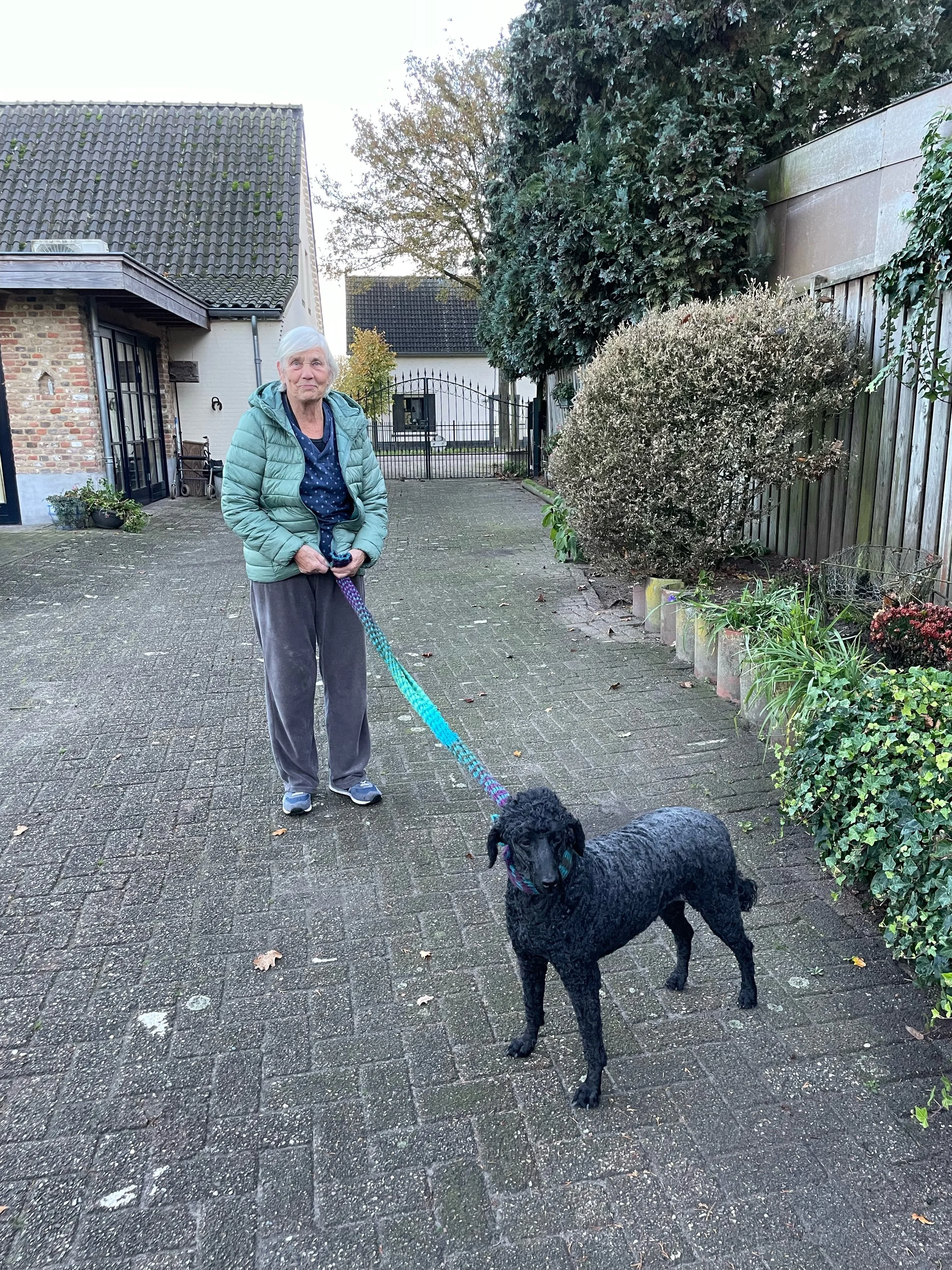 Laatst kwam ik haar tegen, ze had heel innovatief een sjaal gebruikt als hondenriem voor één van onze honden. Elly heeft haar eigen hond Lex in moeten laten slapen, Lex was haar maatje in alles. Op dat moment dacht ze dat onze hond, haar Lex was.